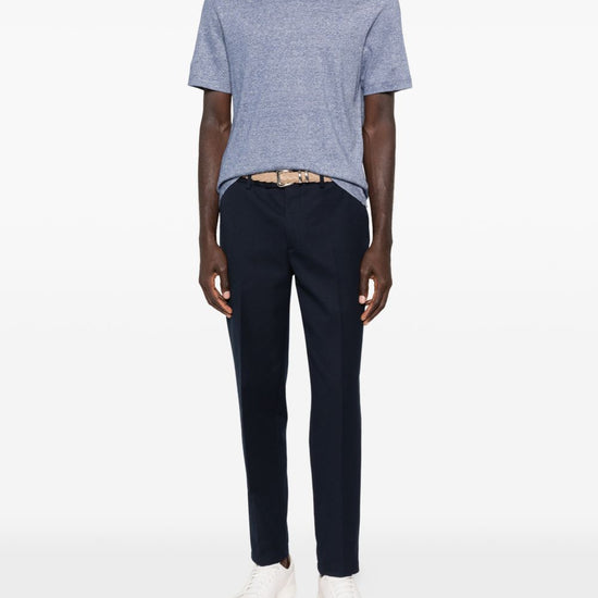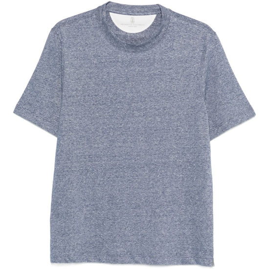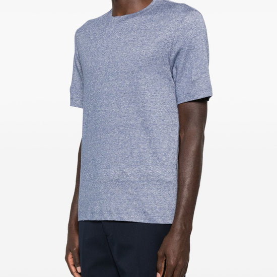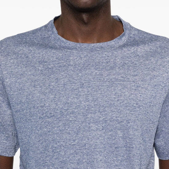 Blue short sleeve crew neck knitted construction linen blend t-shirt
