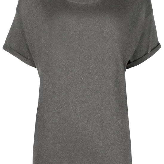 Charcoal grey cashmere blend metallic threading crew neck short sleeves cashmere and silk t-shirt