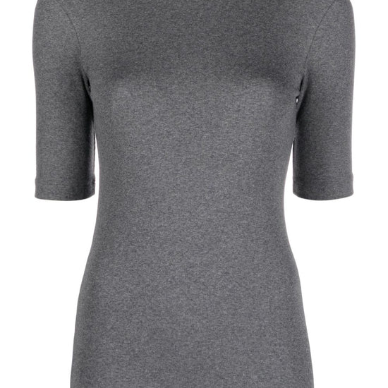 Charcoal grey stretch-cotton signature monili chain detail round neck rear button fastening short sleeves straight hem cotton t-shirt size and fit - this piece fits true to size. we recommend you get your regular size. model is 1,75m / 5ft 8in wearing size s