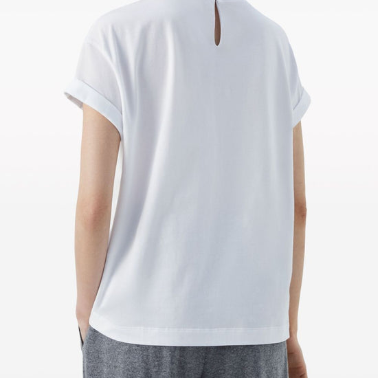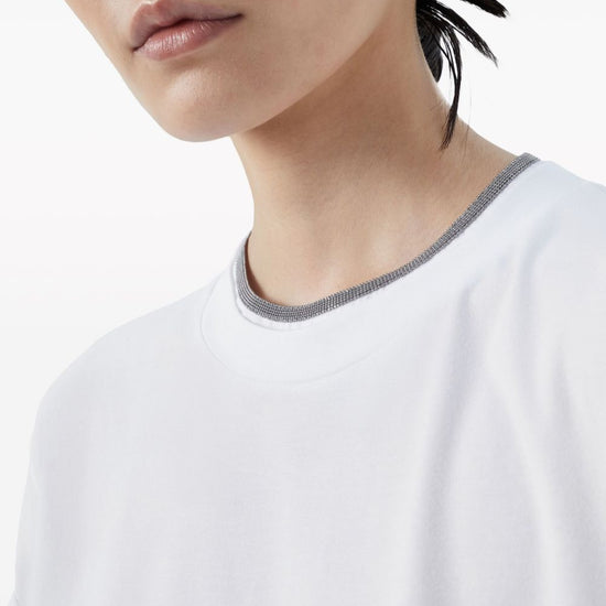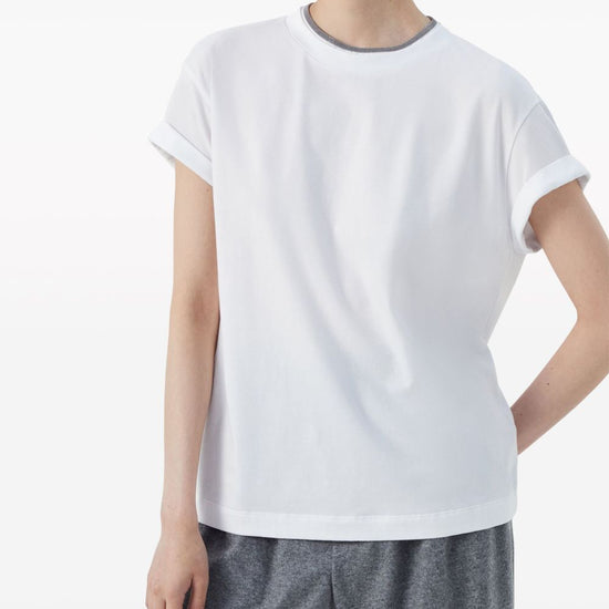 White cotton blend contrasting trim crew neck short sleeves cotton t-shirt