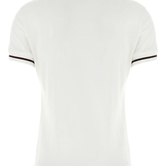 White cotton material burgundy trim short sleeves round neck embroidered emblem logo cotton t-shirt