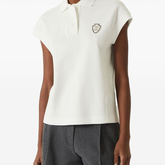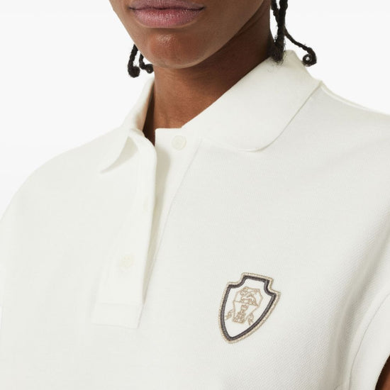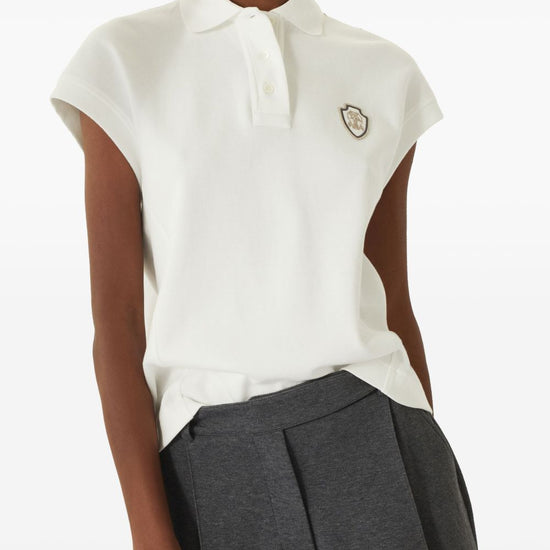 White front button placket short sleeves straight hem logo cotton polo shirt