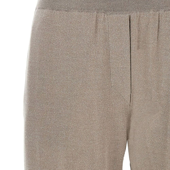 Taupe grey elasticised waistband cuffed hems tapered leg design wool and silk trousers size and fit - this piece fits true to size. we recommend you get your regular size. model is 1,75m / 5ft 8in wearing size s