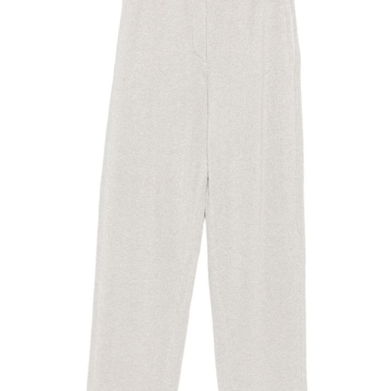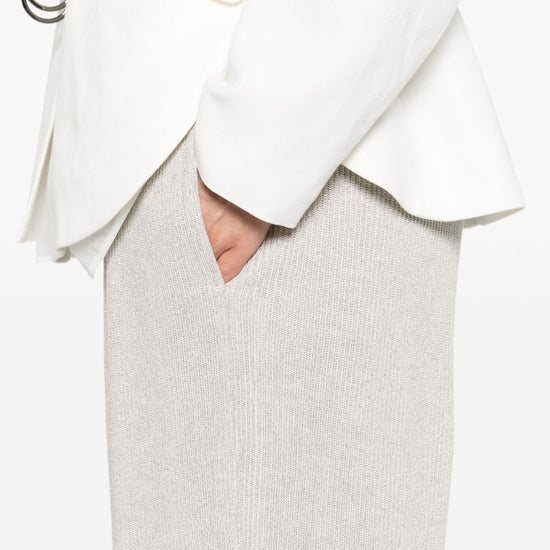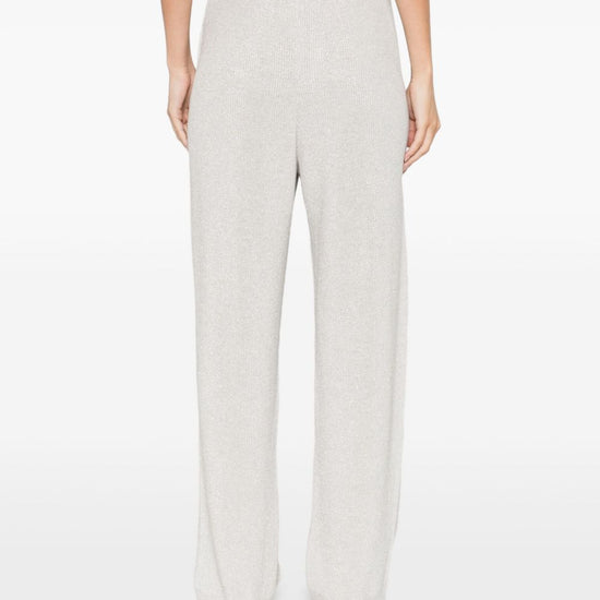 Grey ribbed knit straight leg elasticated waistband mid-rise cropped length cotton trousers