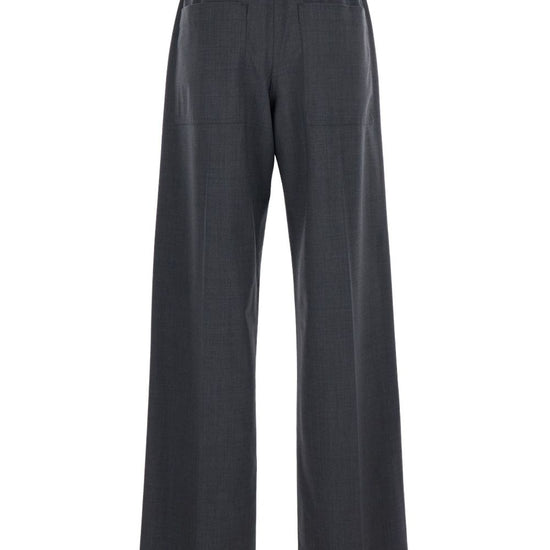Dark gray elasticated waistband two front pockets pleat details flowing design wool wide-leg trousers size and fit - this piece fits true to size. we recommend you get your regular size. model is 1,75m / 5ft 8in wearing size 40 (it)