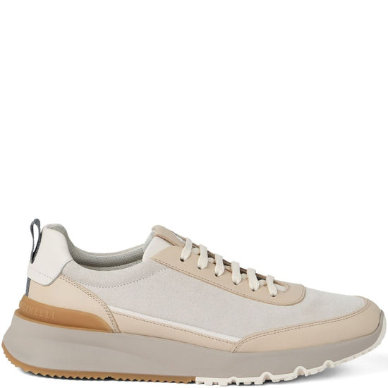 Brunello Cucinelli Washed suede and semi-polished calfskin runners