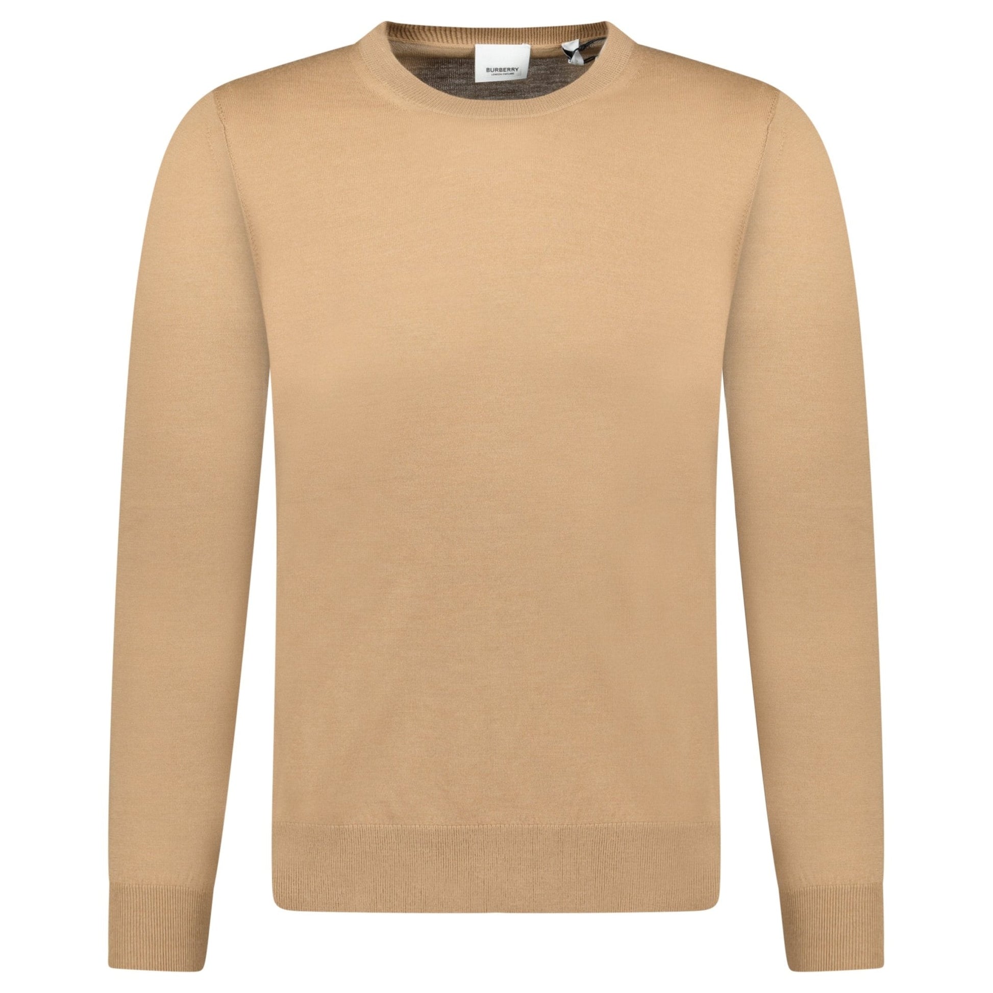 Burberry 'Bempton' Embroidery Check Elbow Wool Jumper Camel