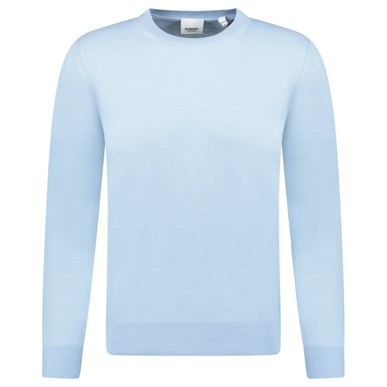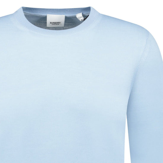 Burberry 'Bempton' Embroidery Check Elbow Wool Jumper Pale Blue