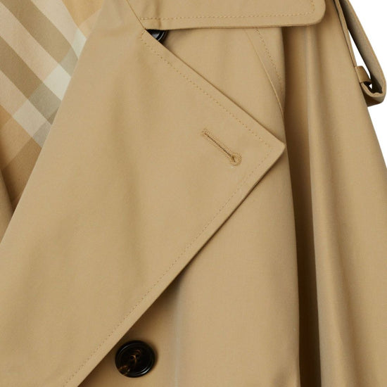Beige cotton wide notch lapels long sleeves belted cuffs double-breasted button fastening belted waist two side inset pockets checked lining straight hem cotton trench coat size and fit - this piece fits true to size. we recommend you get your regular size. model is 1,75m / 5ft 8in wearing size 8 (uk)