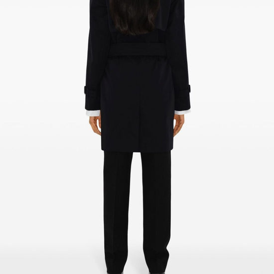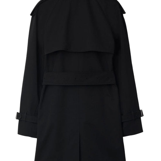 Black cotton gabardine weave detachable collar check pattern double-breasted button fastening wide notch lapels epaulettes long sleeves belted cuffs belted waist two side welt pockets american rear vent checked lining straight hem cotton trench coat size and fit - this piece fits true to size. we recommend you get your regular size. model is 1,75m / 5ft 8in wearing size 8 (uk)