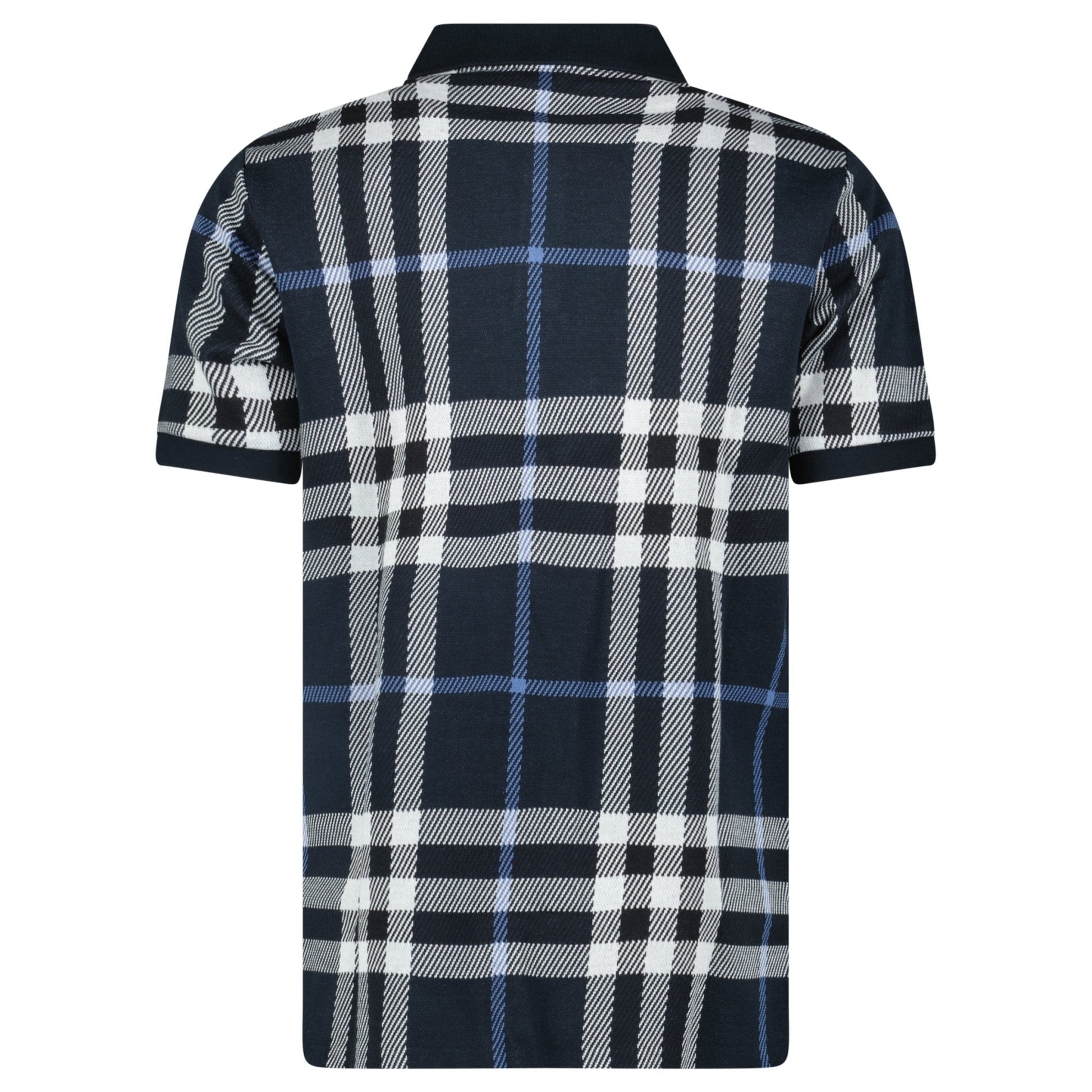 refine your wardrobe with the burberry 'ferry' check cotton polo in navy, a modern reinterpretation of a house classic. crafted from 100% cotton, this jacquard-woven polo showcases the iconic burberry check pattern, originally introduced as trench coat lining in the 1920s. designed for both comfort and style, it features a partially buttoned front and a structured polo collar, making it a versatile addition to any wardrobe.