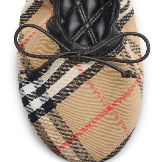 Beige check pattern leather trims bow detail elasticated edges quilted insole check ballets