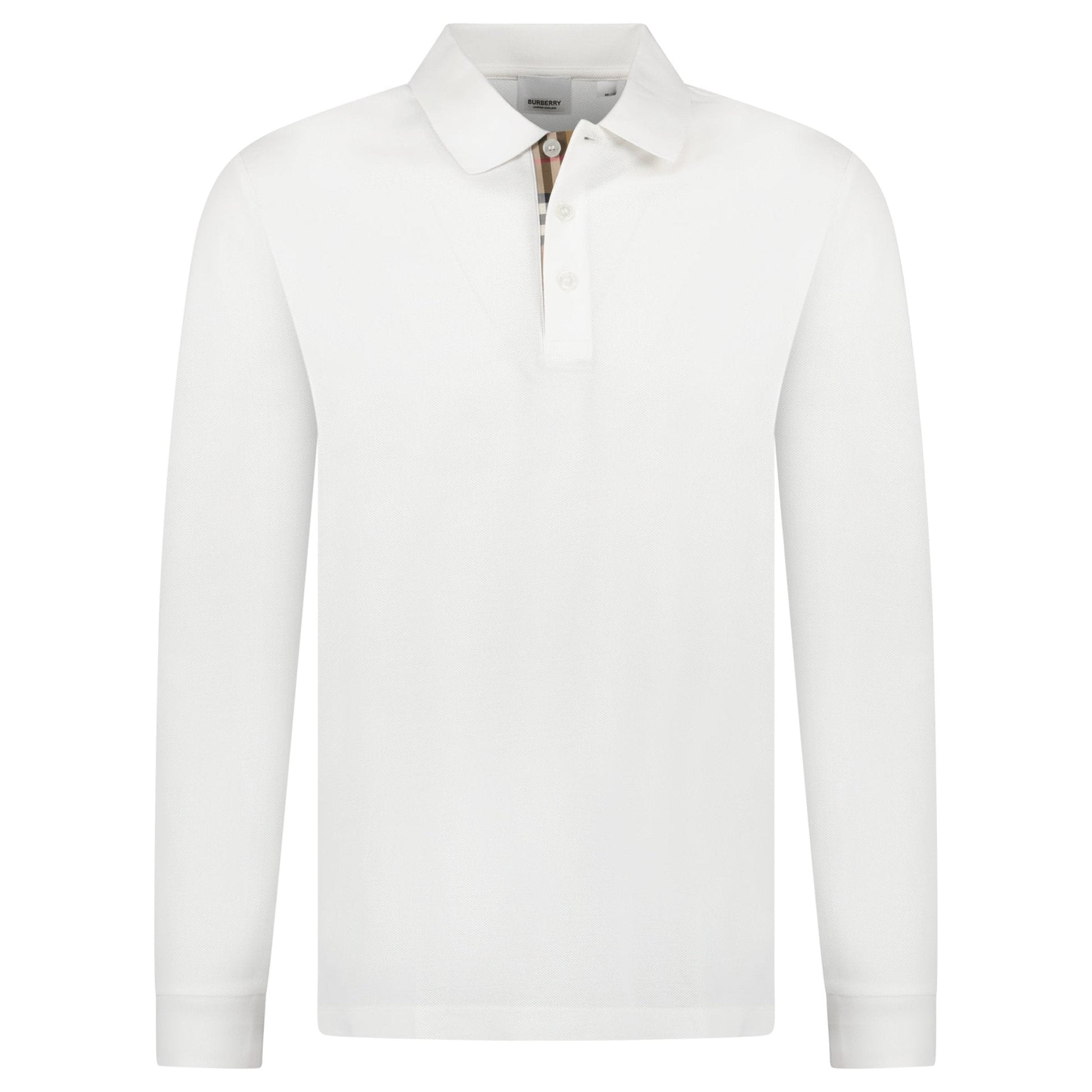 Burberry 'Hartford' Long Sleeved Check Placket Polo-Shirt White