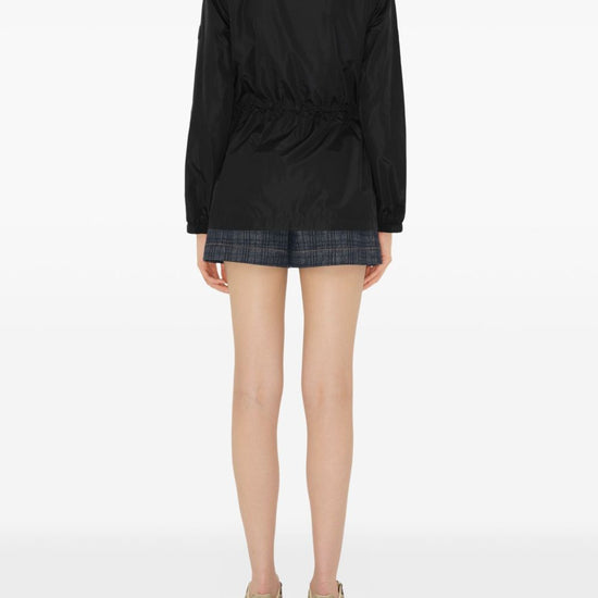 two side welt pockets check motif nylon jacket