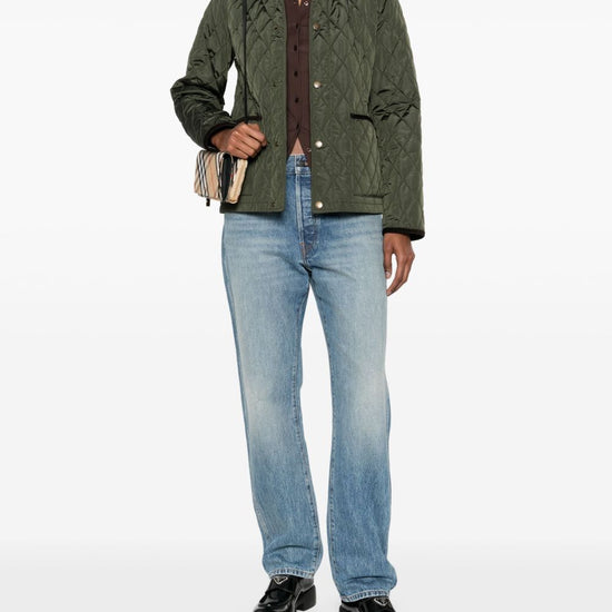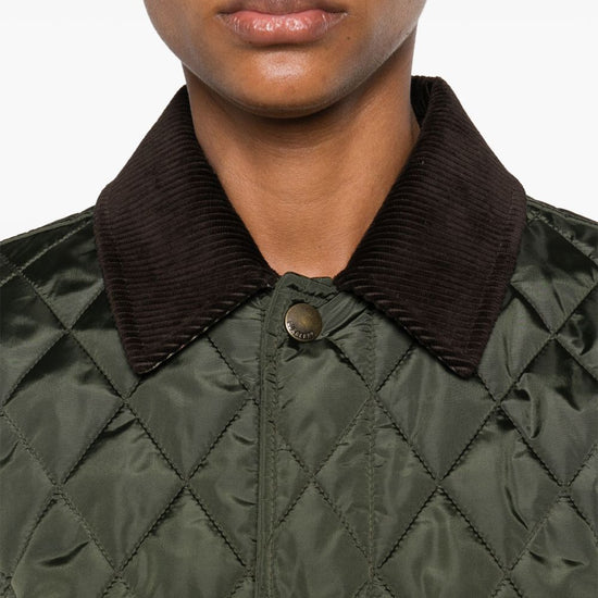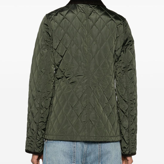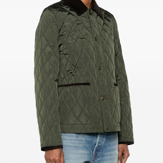 Olive green front press-stud fastening two patch pockets long sleeves quilted jacket size and fit - this piece fits true to size. we recommend you get your regular size. model is 1,75m / 5ft 8in wearing size s