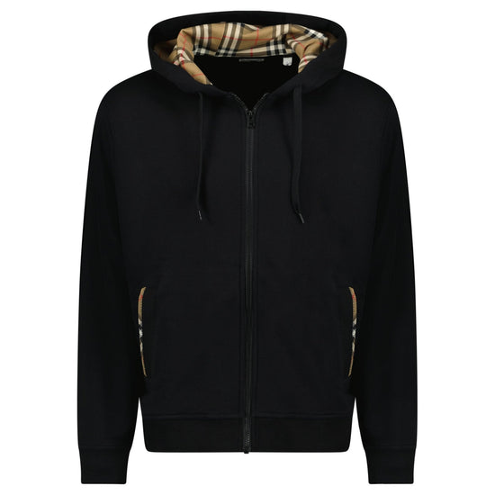 elevate your wardrobe with the burberry ‘keira’ logo hoodie zip sweatshirt in black. crafted from premium cotton, this versatile hoodie delivers both comfort and contemporary style, making it perfect for everyday wear. featuring burberry’s iconic check detailing on the hood and by the kangaroo pocket, along with a signature logo patch on the chest, this zip‑up design blends timeless craftsmanship with modern streetwear appeal. ideal for layering, it adds a refined edge to any casual look.