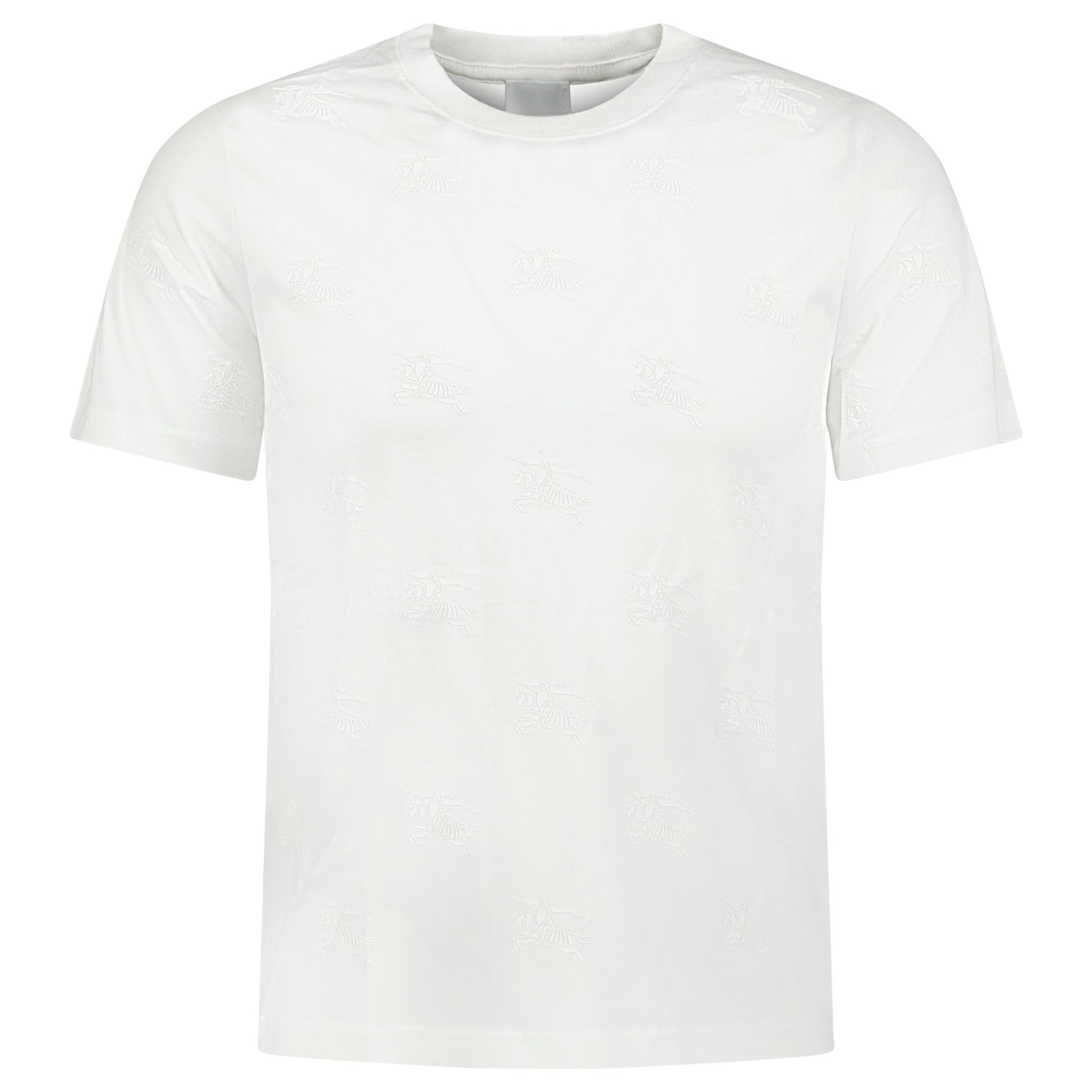 elevate your wardrobe with the burberry 'margot' rubber horse logo t-shirt in white. crafted from premium cotton, this versatile t-shirt provides both comfort and luxury, making it perfect for refined casual wear. featuring the iconic burberry london england embroidered logo, this classic crewneck tee blends timeless design with a modern aesthetic. ideal for everyday styling or pairing with statement pieces, this essential brings a sophisticated touch to any outfit.