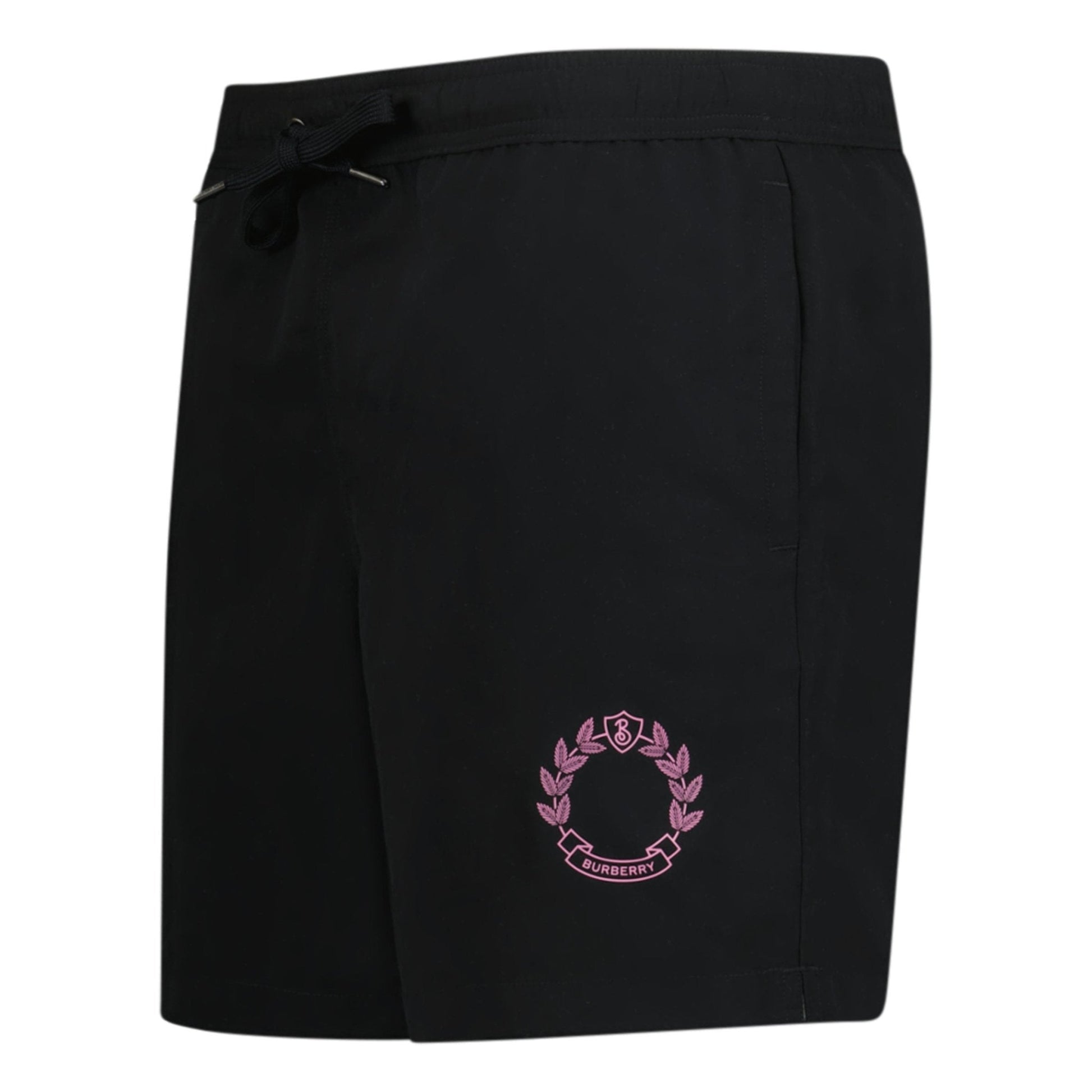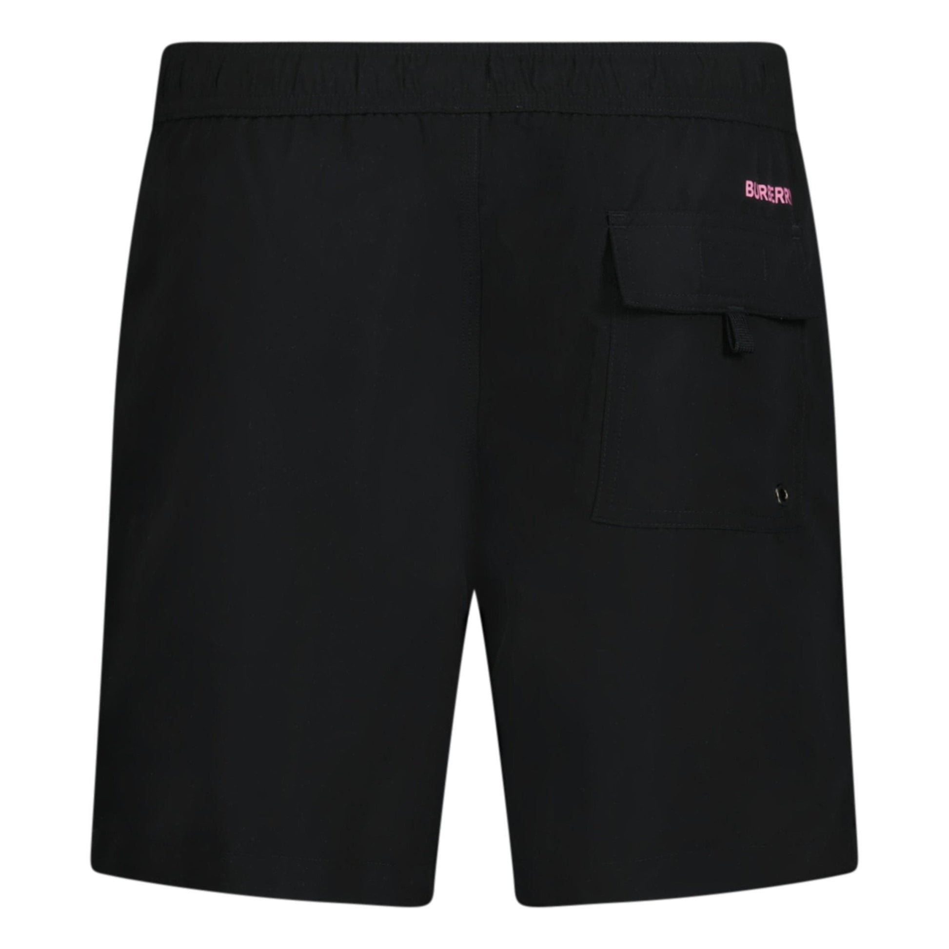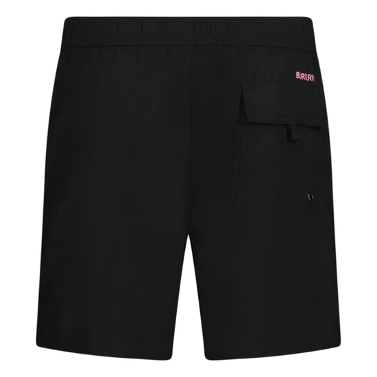 enhance your beachside style with the vibrant burberry 'martin' swim shorts in black with pink logo. crafted with meticulous attention to detail, these swim shorts combine comfort and fashion-forward design. the burberry logo subtly showcases your impeccable taste. dive into the waves and make a stylish splash with these must-have swim shorts. perfect for the modern gentleman looking to make a bold statement at the beach or pool.