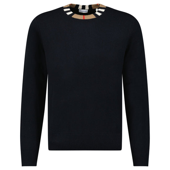 Burberry 'Noland' Knitted Wool/ Cashmere Jumper Check Neck Black