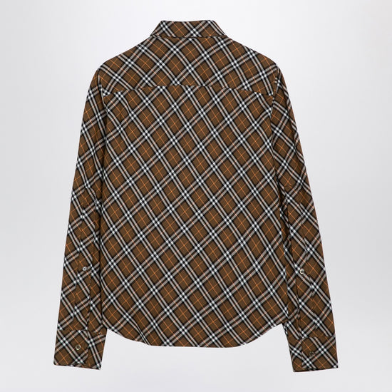 Long sleeve shirt by burberry in oxide-coloured check cotton featuring a button-down collar, a front button placket, long sleeves, button cuffs and a curved hem. size and fit - model wears size 6 uk model measurements: height: 180 cm chest: 85 cm waist: 66 cm hips: 89 cm