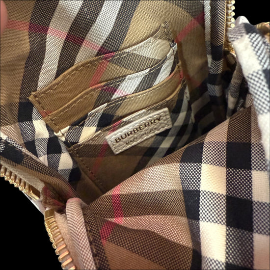 Burberry Phone Pouch Check Strap Grained Leather in Limestone