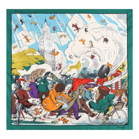 Bright green illustration square shape printed silk foulard