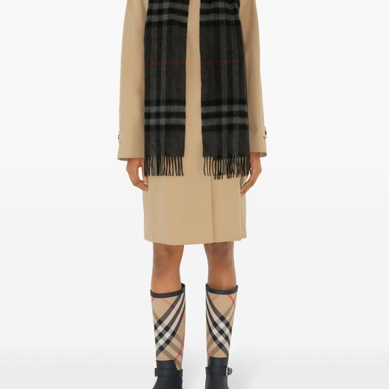 Black charcoal grey bright red cashmere check pattern fringed edge giant check cashmere scarf