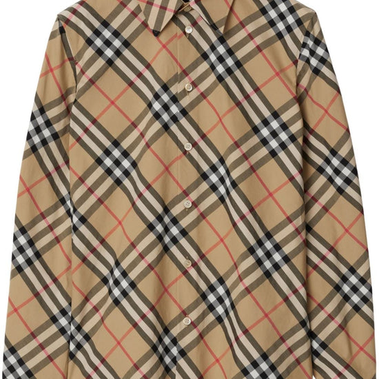 Beige/black/red cotton check pattern classic collar front button fastening mother-of-pearl buttons long sleeves buttoned cuffs curved hem check cotton shirt size and fit - this piece fits true to size. we recommend you get your regular size. model is 1,75m / 5ft 8in wearing size 8 (uk)