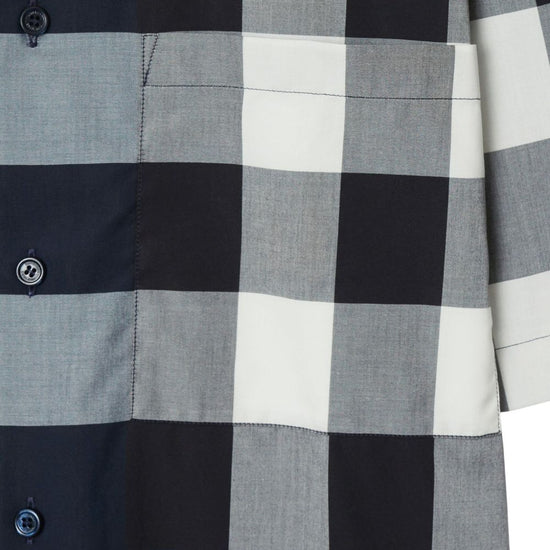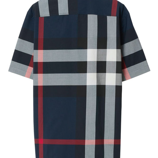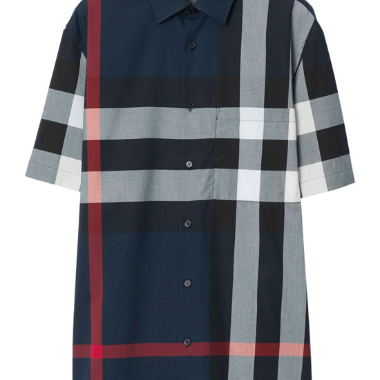 Navy blue/multicolour cotton check pattern classic collar front button fastening short sleeves chest patch pocket curved hem check cotton shirt