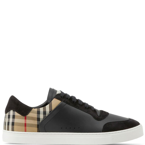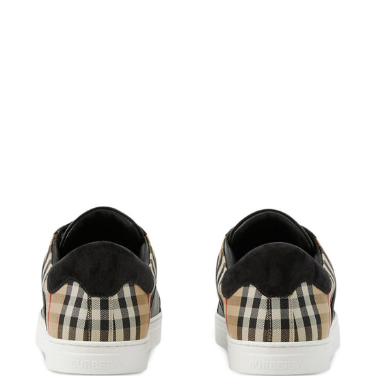 Archive beige/black calf leather calf suede sheepskin vintage check pattern round toe front lace-up fastening flat rubber sole leather sneakers size and fit - heel 1 in / 2,5 cm; platform 1 in / 2,5 cm