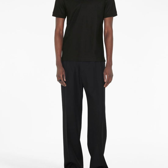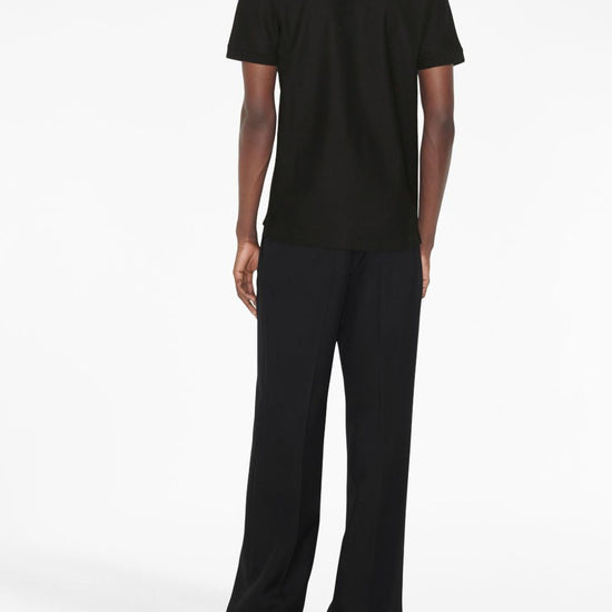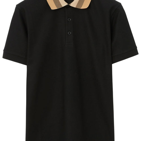 Black cotton check print contrasting polo collar front button placket short sleeves straight hem check collar cotton polo shirt