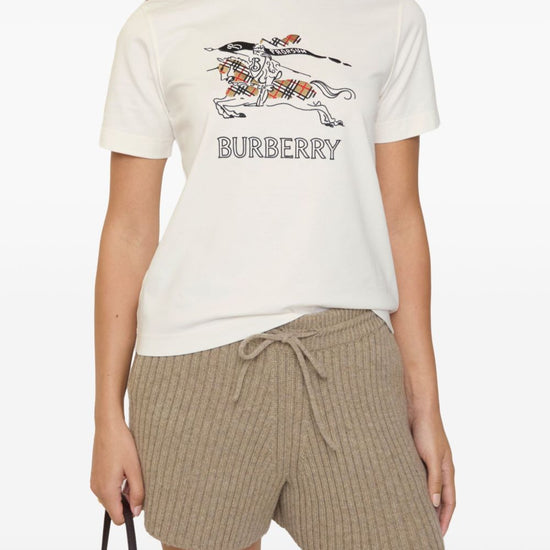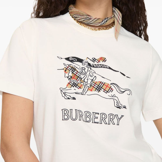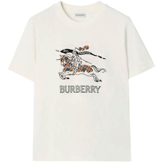 Chalk logo equestrian knight design chain-stitch embroidery rib-knit neckline short sleeves ekd cotton t-shirt