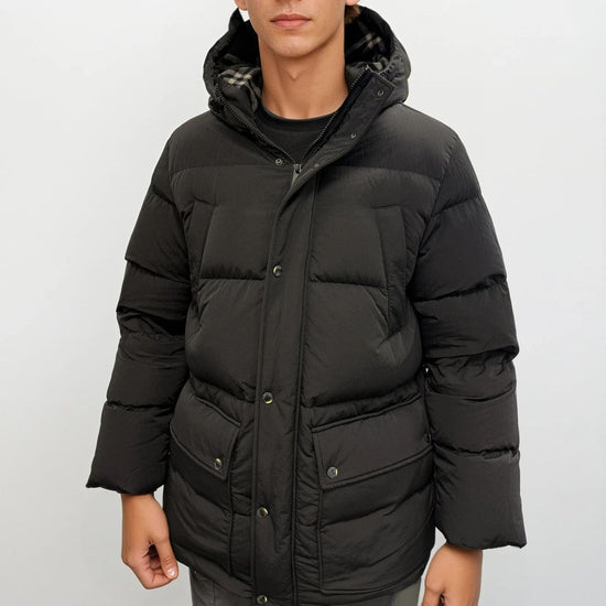 bring functionality and luxury together with the burberry nylon puffer coat in black. crafted from durable polyamide with a padded quilted finish, this coat offers both warmth and comfort through colder months. the fixed hood and dual press stud and zip closure provide extra protection from the elements, while multiple pockets ensure practical storage. finished with the signature burberry b-shield patch on the sleeve, it blends contemporary outerwear design with iconic heritage details.