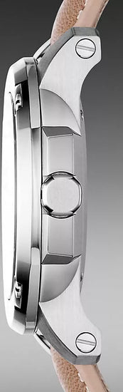 - octagonal stainless steel case, 34mm, screws on bezel, sapphire crystal, logo engraved on inner wall