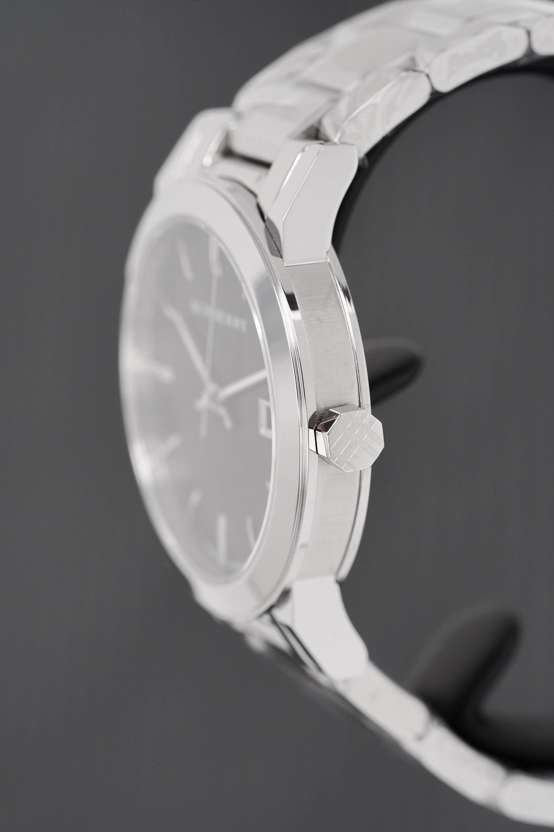 introducing the burberry bu9001 unisex watch, a timepiece that combines classic design with modern functionality. this watch features a 38mm stainless steel case paired with a matching stainless steel bracelet, offering a sleek and durable finish.