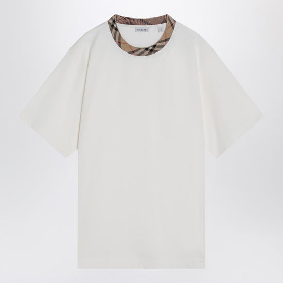 Burberry White cotton T-shirt with Check finishes