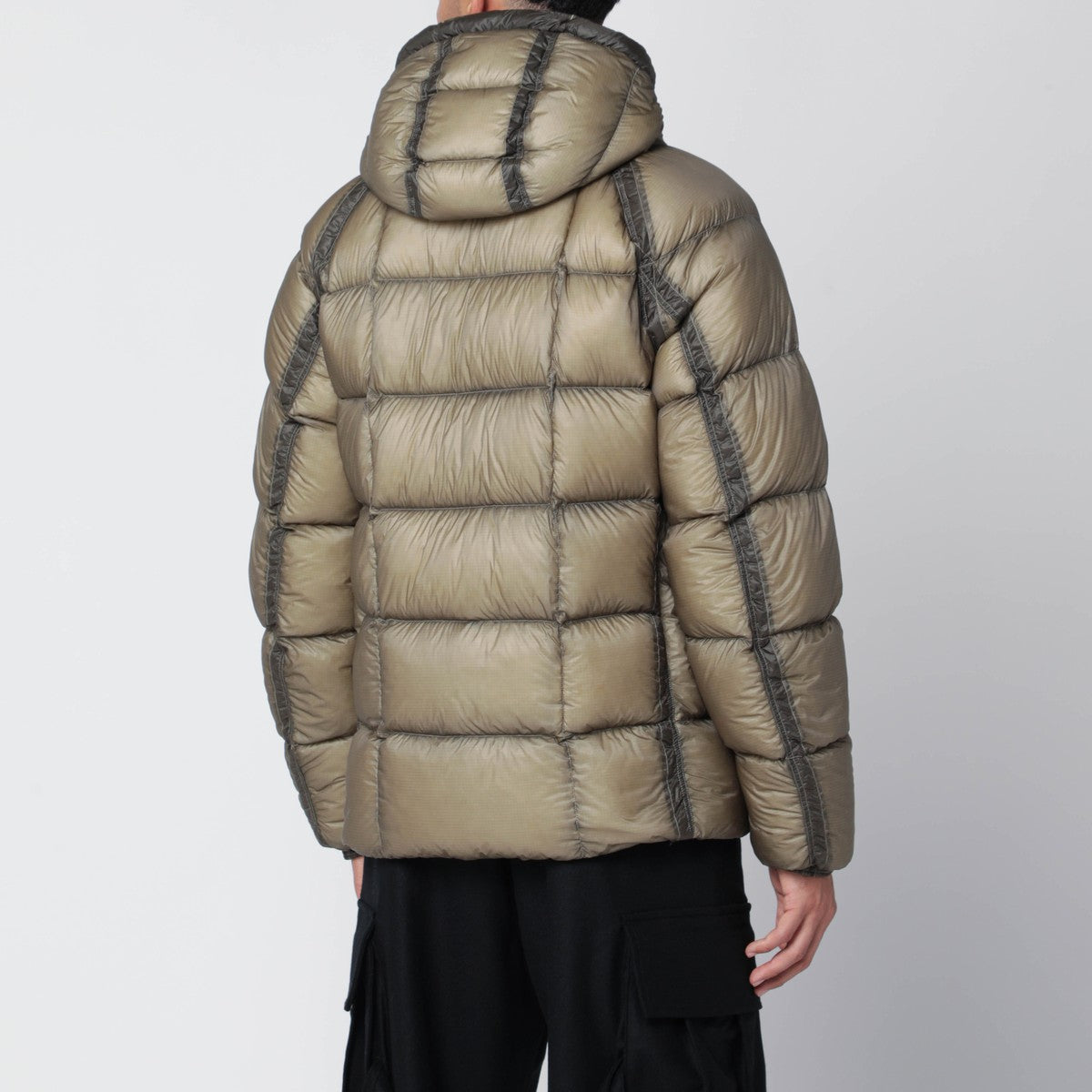 C.p. company jacket in shaded rock-colored nylon, featuring double zip closure, long sleeves with one applied pocket and logo lens detail, adjustable drawstring hood, elastic cuffs, and two zipped front pockets. size and fit - model wears size l model measurements: height: 189 cm chest: 104 cm waist: 78 cm hips: 95 cm