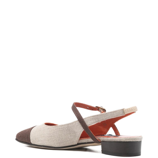 Beige and brown buckle fastening cap toe block heel this piece comes complete with a protective dust bag. oceano slingback ballets
