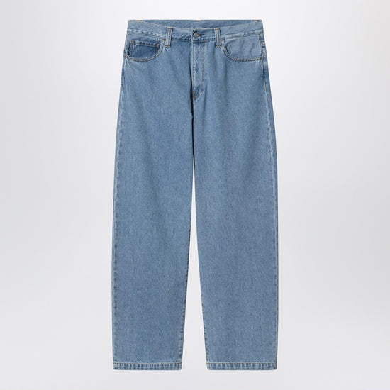 Carhartt wip pants in heavy denim treated with stone wash for a lived-in look, featuring a loose tapered fit, classic five pockets, regular waist, zip fly, and square label on the back. size and fit - model wears size 32 model measurements: height: 189 cm chest: 104 cm waist: 78 cm hips: 95 cm