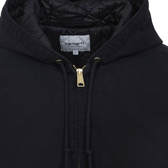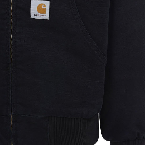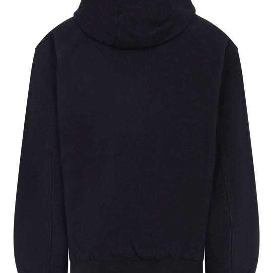 Black organic cotton material zip fastening quilted hood lining kangaroo pockets square label cotton hooded jacket