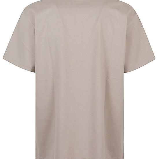 Beige t-shirt, short sleeves, crew neck, straight hem. logo cotton t-shirt size and fit - this piece fits true to size. we recommend you get your regular size. model is 1,84m / 6ft 1in wearing size m