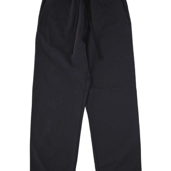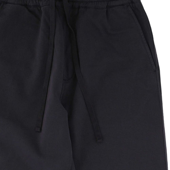 Charcoal grey elasticated waistband two side slash pockets rear patch pocket logo patch to the rear cotton blend trousers