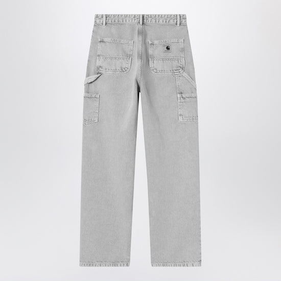 Carhartt wip pants in heavy dearborn canvas without lining in black, characterized by a chalk wash treatment design for a faded effect, comfortable fit, straight leg, regular waist, tool pockets, hammer loop, one back pocket with square logo label in fabric, relaxed straight fit, bar tacks at high-stress points, belt loops, and front closure with zip and button. size and fit - model wears size 26 model measurements: height: 179 cm chest: 83 cm waist: 61 cm hips: 88 cm