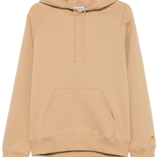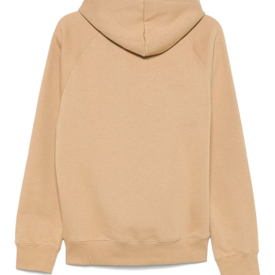 Brown drawstring hood front pouch pocket embroidered logo at the sleeve long sleeves logo cotton hoodie size and fit - this piece fits true to size. we recommend you get your regular size. model is 1,84m / 6ft 1in wearing size m