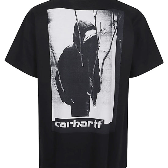 Black, solid color, crew neck, short sleeves, contrasting logo on the chest, straight hem logo cotton t-shirt