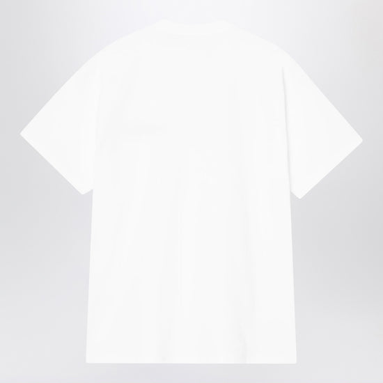 White organic cotton t-shirt by carhartt wip, featuring a loose fit, crew neck design, short sleeves, and graphic embroidery on the chest.