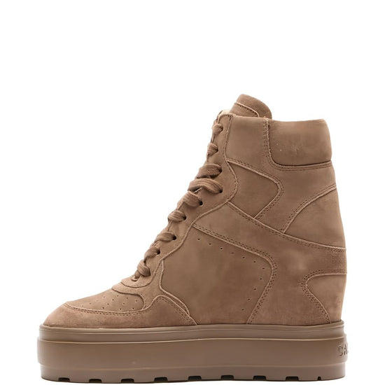 Brown suede leather high top lace-up fastening wedge heel platform boots