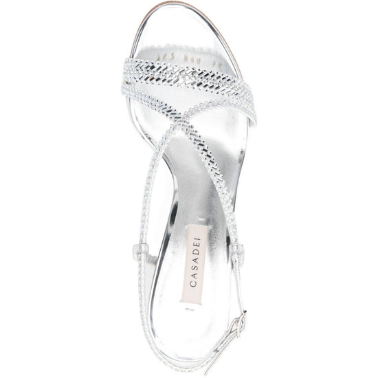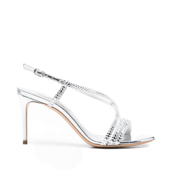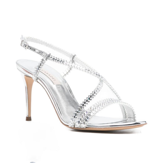 Silver-tone criss-cross strap slingback strap stiletto heel buckle fastening open toe starsway julia heel sandals size and fit - heel 9 cm.