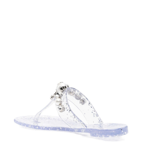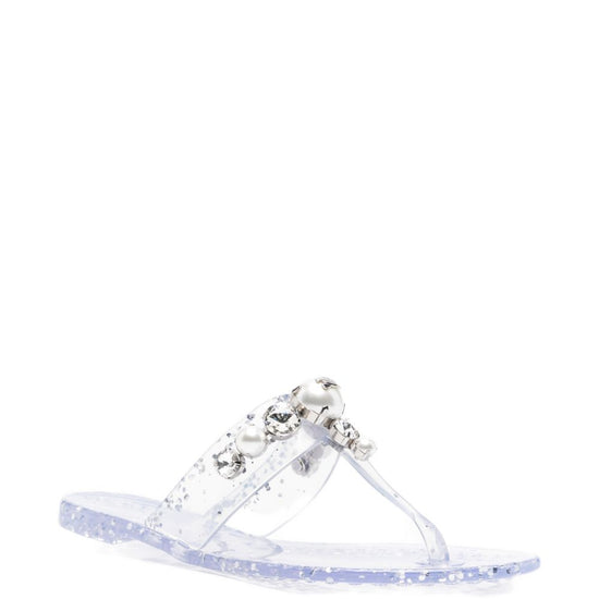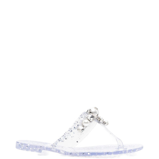 White embellishment open toe flat sole thong sandals size and fit - heel 1 cm