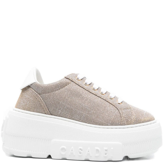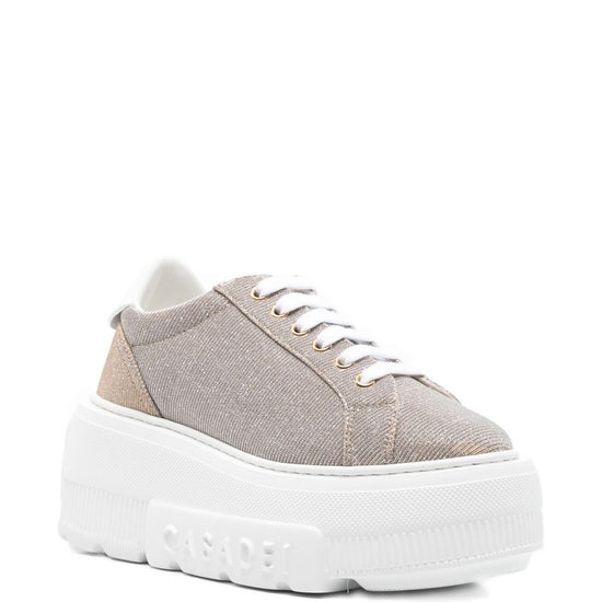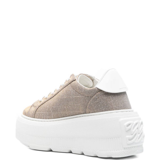 Brown metallic effect lace-up fastening platform sole round toe low-top design nexus cas25 sneakers
